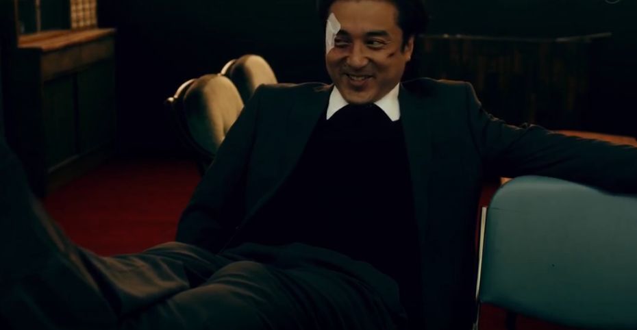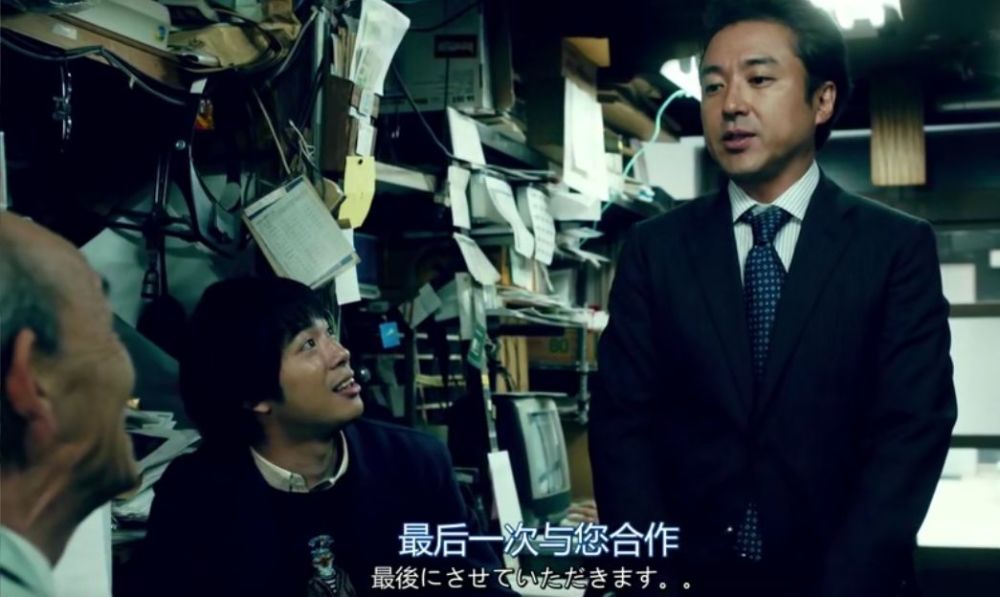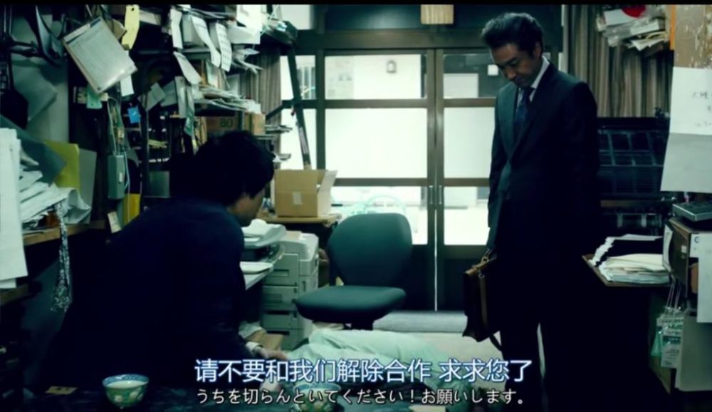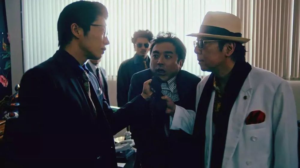 这边还没解决那边又出事端,吉田大叔饰演的另一派黑帮大佬——岩切气呼呼上线,他一掌拍在龙崎桌前:俺家海报怎么印着你家电话号码?!