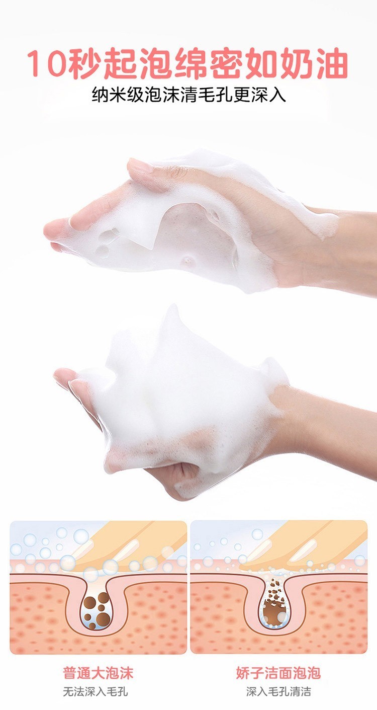 娇子儿童滋养洁面泡泡懂家长的顾虑,成分天然,植物萃取,弱酸不刺激,入眼亦无忧。同时,洗面奶的泡泡非常绵密,犹如奶油的泡泡可深入毛孔清洁,带走油脂污垢,令宝宝肌肤更清洁,健康守护宝宝的肌肤健康。同时,绵密细腻的泡泡也可以在一定程度上减少对宝宝娇嫩皮肤的刺激,用它洗脸就像是被云朵包围,柔软舒适,上脸巨舒服。