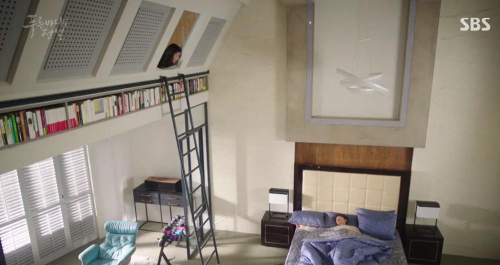 与美人鱼的大海相比,许俊宰的家要小得多。这套顶层公寓属于复式阁楼设计,工业风与现代风混搭个性十足。配合剧情的需要,最亮眼的大概就是房子里有一个小泳池。卧室里大面积浅色背景再加些黑色线条的家具,显得简约有质感,可爱的小阁楼与书架合二为一,男女主角的高甜互动让观众瞬间少女心爆棚,真想让人立即住进小阁楼。