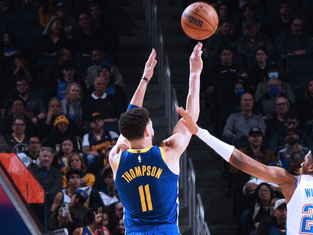 本场比赛,克莱汤普森22投15中,三分16中12得到42分3篮板1助攻。单场12记三分是汤普森职业生涯第二高,仅次于单场14记三分。
