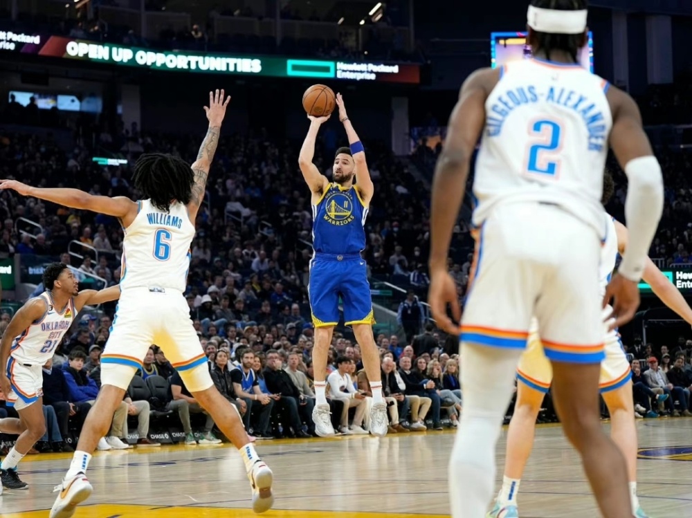 值得一提的是,本赛季库里缺阵时,克莱汤普森场均可以得到27.2分4.7篮板,也能投进5.1个三分,而库里出战时,克莱汤普森场均可以得到19.4分3.7篮板,单场命中3.9个三分。相对来说,库里缺阵之后汤普森各项数据都有所提升。