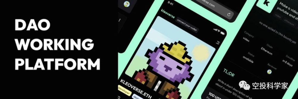Kleoverse 致力于成为 DAO 和贡献者间的桥梁,用户可以在 Kleoverse 平台上按照种类(如 DeFi、Gaming 等)和公链(如以太坊、BSC 等)来筛选适合自己的任务。