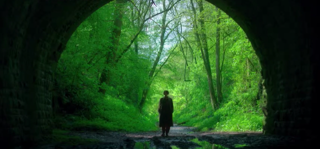 还有,她穿越前站在隧道时,镜头的应用也把诡异感上升到极致——像不像有人正在背后盯着她,对她进行死亡凝视?