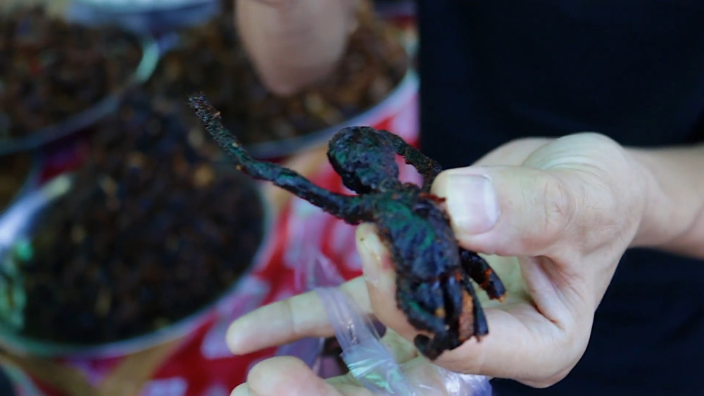 传说上世纪70年代,柬埔寨遭遇饥荒,那就把蜘蛛给活炸了,毛茸茸的样子,将连毛一起炸,来一口,一定也是嘎嘣脆!