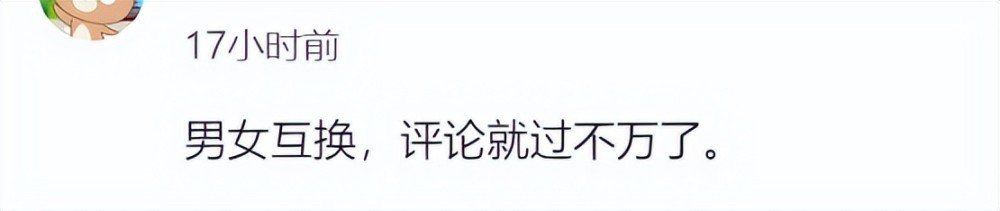 这位网友提议说“男女互换”,是啊,男女互换以后,会是什么样呢?两个人都上班,女人下班之后照顾家庭,照顾孩子,还要烧饭、盛饭、端汤,好像一切都理所当然。
