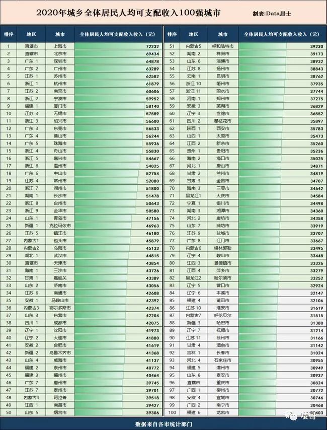 居民收入方面,2020年石家庄全年城乡居民人均可支配收入为30955元,排名全国第93名;