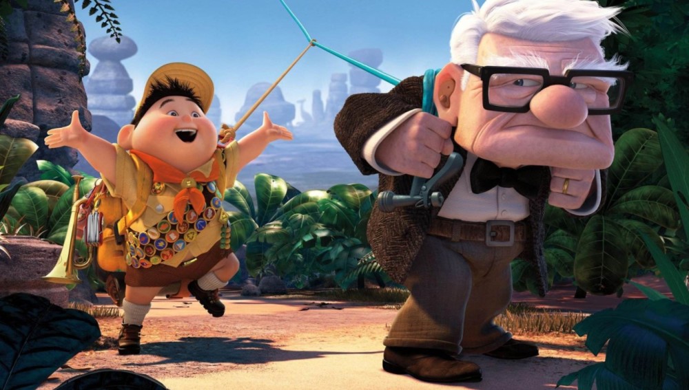 第一次看《飞屋环游记》是在高中的美术课上,众所周知,高中生活严肃、紧张甚至有些压抑,这部电影以它的温情、动人给我的生活带来了一抹亮色。开头的十几分钟,确实十分经典,没有对话,没有台词,但是就是这样的画面,加上温情的背景音乐,完成了两人的爱情历程的华丽演绎。这一段,绝对是影片的一个亮点,十分经典的片段。结尾做得也很不错,也颇具感染力,确实也对梦想有提及,有联系。