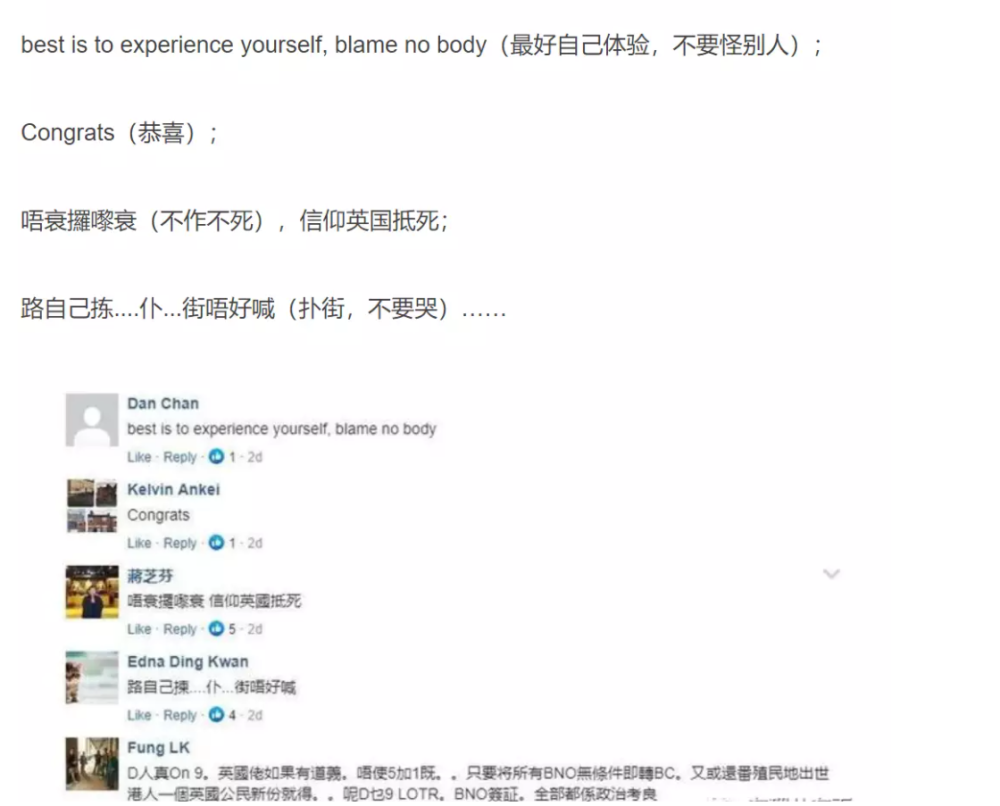 纪录片拍出后,有网友并不看好夫妻俩的选择,有人说:“唔衰攞嚟衰(不作不死),信仰英国抵死。”,也有人说:“路自己拣(路是自己选的)....仆...街唔好喊(扑街,不要哭)……