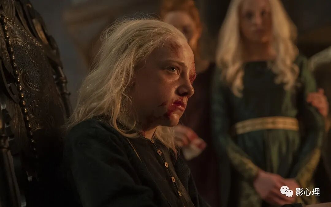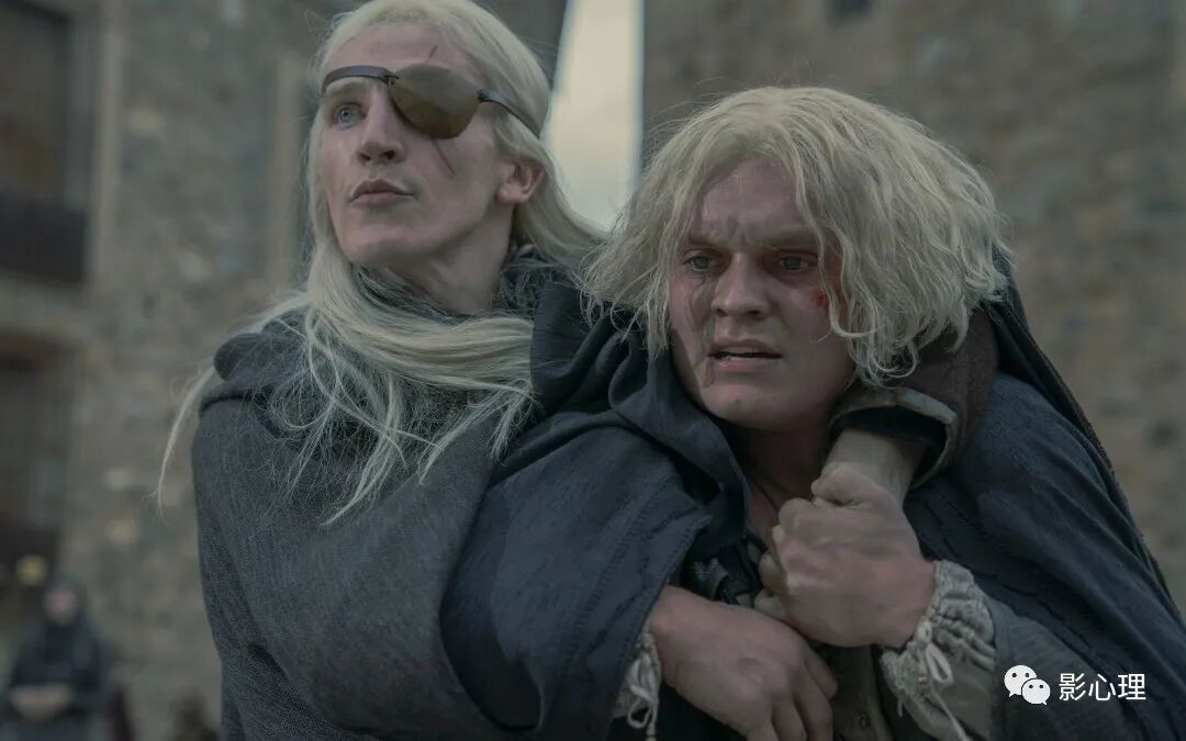 在打斗中孩子们动了真格,小路失手戳瞎了伊蒙得的一只眼睛。艾莉森赶到现在惊惧交加,一定要小路也付出一只眼睛的代价。伊蒙得却满不在乎,他对母亲说,用一只眼换这条巨龙,值了。可见伊蒙得的野心和狠劲在小小年纪已经显露,偏激比叔叔戴蒙更甚几倍。