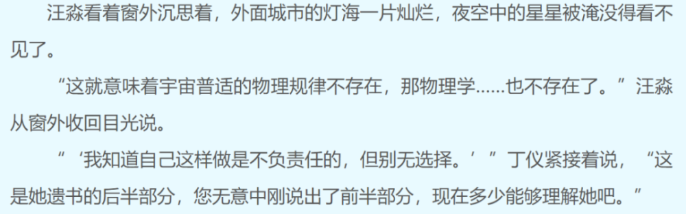 还记得那句“给岁月以文明,而不是给文明以岁月”,赞扬了脆弱而灿烂的宇宙文明,是大刘写给人类的勇气赞歌。