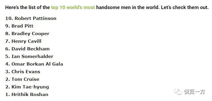 这11位最帅的男士中,英美的明星应该都是比较熟悉的,但是“谁最帅”各人有各人的看法了~