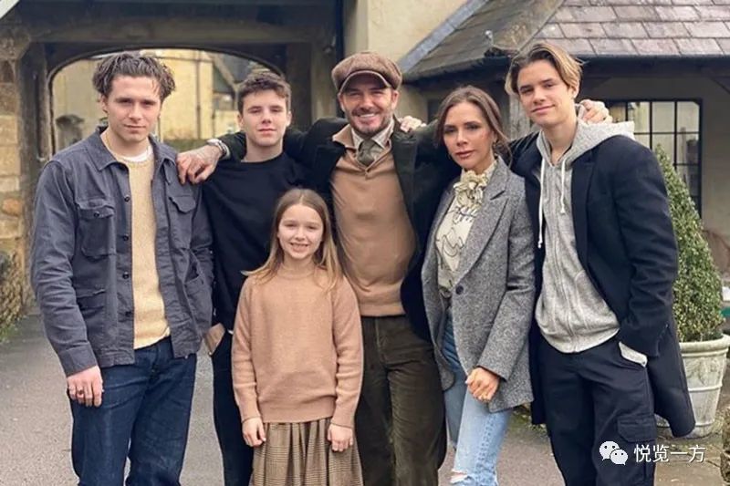 和3个年轻帅气的儿子在一起,贝克汉姆还是最帅的那一个。