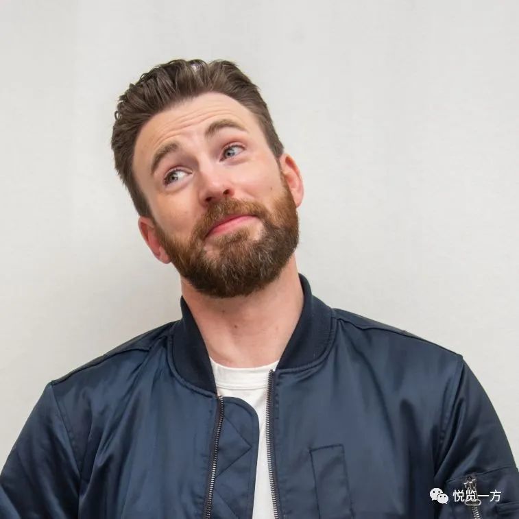 蓝眼睛是克里斯·埃文斯的特质,笑起来很有亲和感。