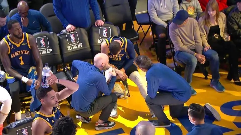 下半场易边再战,库里手感滚烫,4投3中再取11分3篮板2助攻,但是在防守回合受伤,随后返回更衣室,宣布本场比赛不会回归。即便如此,勇士单节还是拿到29分,成功将领先优势扩大到16分。