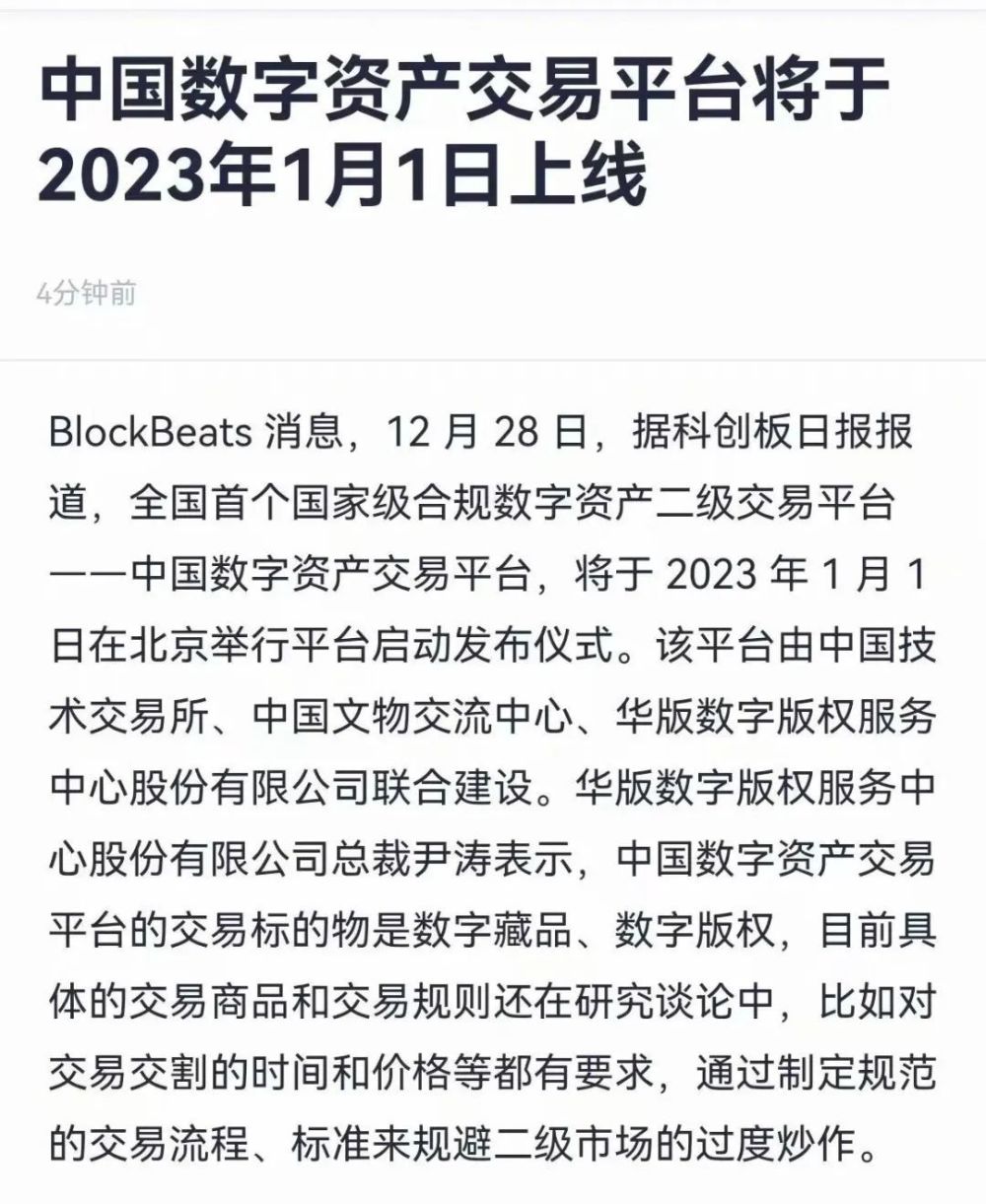因此,老小格确信,在2023年数藏将会以新的方式实现价值发展,会比过去更好。而同时,最新消息是,中国数字交易平台将于2023年1月1日上线。