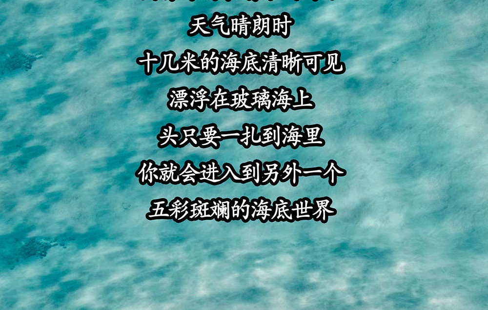 4.保护环境,游泳、浮潜潜水时请勿触摸或破坏珊瑚等违法行为,爱护海洋环境每个人都有义务与责任。