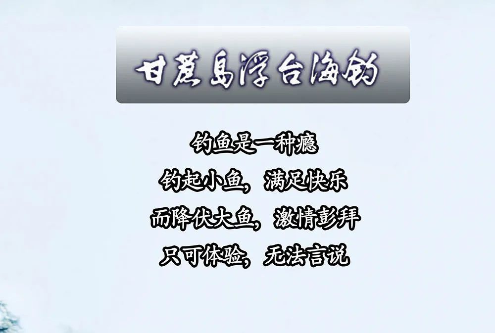 八.出海海钓费: (含一次出海前往甘蔗岛附近浮台海钓,导钓,包船往返,钓鱼渔具等)