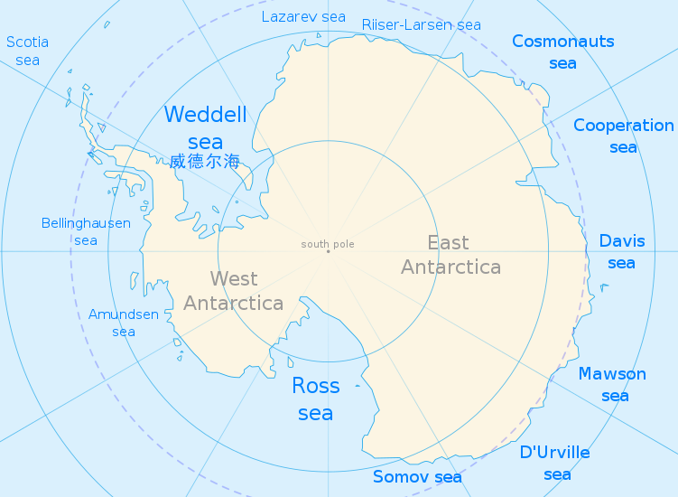威德尔海位于南极洲,在南极半岛以东,以苏格兰水手James Weddell 命名,面积约280万km2,海域的大部分区域在冬季为冰架所覆盖。