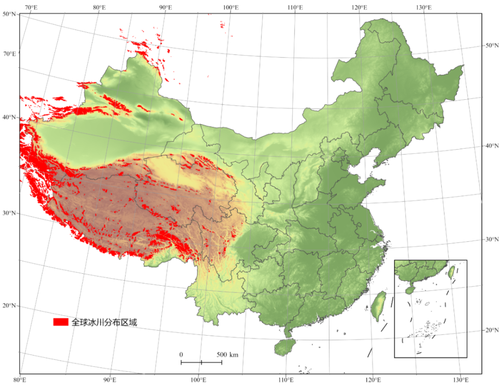 我国现在的冰川分布区域