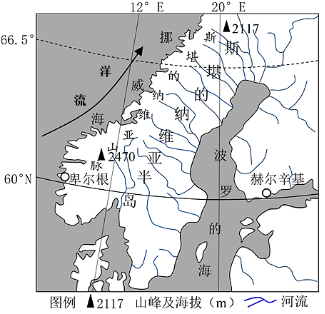 【详解】(1)阅读图文材料,图中显示斯堪的纳维亚半岛东侧受地形影响,河流由西向东流,流程较长,流速相对较慢,且流域面积范围较大;而西侧受地形影响,自东向西流,流程短,流速较快,但流域面积狭小。