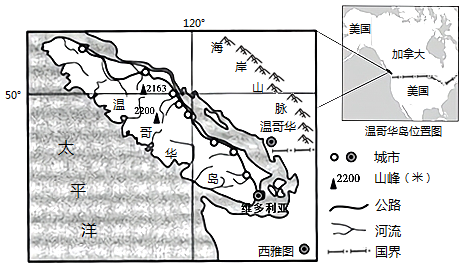 材料二:温哥华市有加拿大“冬季温暖之都”之称,维多利亚市位于温哥华岛的南端,该市集中了温哥华岛50%以上的人口,是温哥华岛上最大的城市。下图为温哥华岛简图。