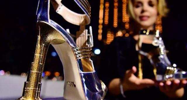 最后隆重登场的是意大利著名设计师安东尼奥·维特里(Antonio Vietri)在迪拜发布了的时尚高跟鞋,售价为1990万美元,约1.4亿人民币,是目前世界上最贵的鞋子,被意大利设计师命名为“月亮之星”,由来自迪拜的神秘买家定制。