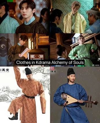 这部剧中女主角落寿一出场的造型就给观众一种熟悉的感觉,像极了前段时间《与君初相识》中迪丽热巴饰演的纪云禾前期的男生造型。而剧中其他女性角色的发饰,仿造中国汉服和汉暨。男性角色常穿的古装服装也成了中国唐朝时期的圆领袍。