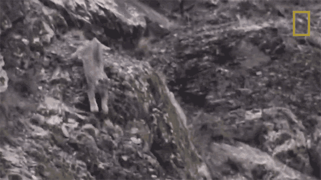 更逗的是,每次被吓到,雪豹还会启动自己特定的“防卫机制”——“憨憨跳跃”。发动方式是四脚展开,呈人类摆出的“吓你一跳”的姿势,然后向前或向后跃出。