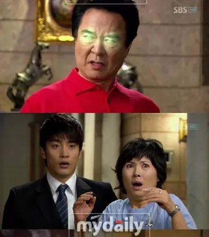 这也不是什么科幻片啊,眼冒绿光是要变身狼人了吗?相信当时这一幕播出的时候一定吓了观众一大跳吧~