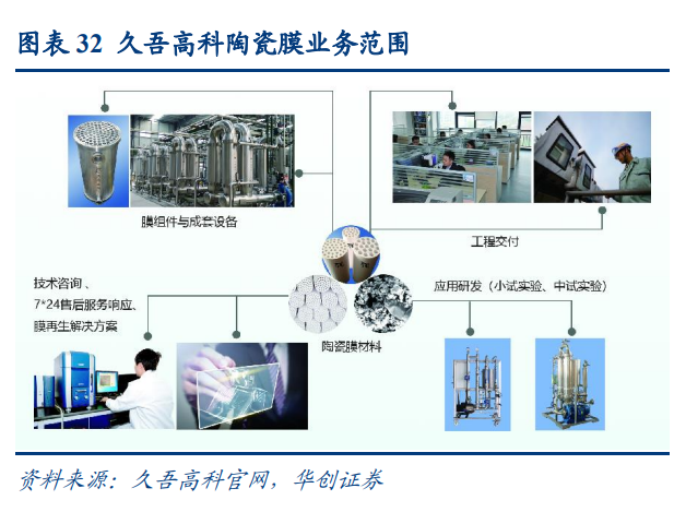 久吾高科成立于 1997 年,是国内最早从事陶瓷膜等膜材料和膜分离技术研发和应用的 企业之一,面向工业过程分离与特种水处理领域提供系统化的膜集成技术整体解决方案。 经过二十多年的发展,公司已具备了较强的陶瓷膜材料研发和生产、有机膜材料研发及 产业化、各类膜组件和成套设备研发和生产、膜工艺开发以及膜分离系统集成能力,能 够面向不同应用领域提供系列化膜集成技术整体解决方案。公司现已被认定为“中国膜 行业陶瓷膜领域龙头企业”,陶瓷滤膜产品及成套装备被国家工信部认定为第六批制造 业单项冠军产品。