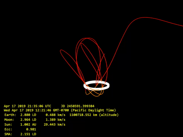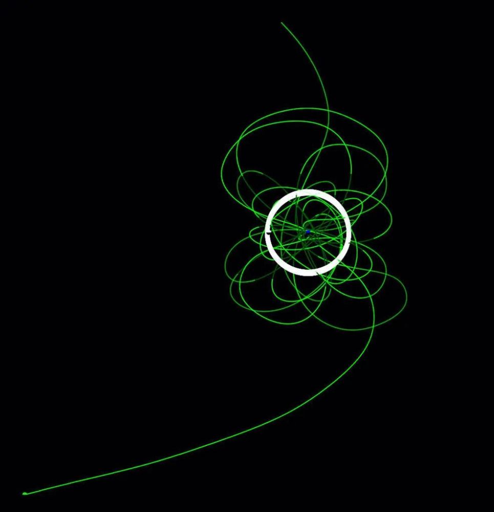 把数值模拟的时间轴转向未来,会发现它在1月中旬通过了自己的最后一次近地点,开始走上离开地球的轨道。