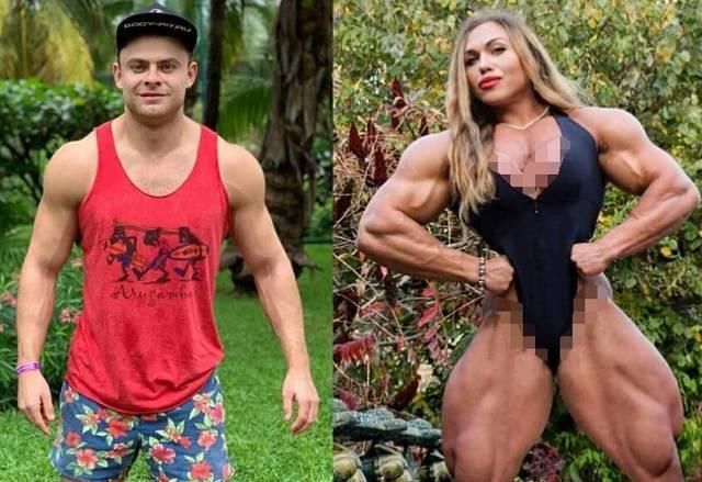 看上图与肌肉男对比,是不是显她很强壮,如果和专业健美运动员比起来也不差。
