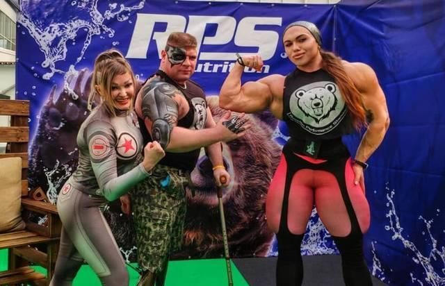 看看她与威廉·波纳克健美运动员相比,是不是一点不弱,相反从腿部肌肉围度上看也不逊色于威廉,看看后面的那位男子,看到库兹涅佐娃都有点不敢相信。