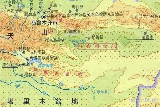 “吐鲁番”在维吾尔语中是“低地”的意思。吐鲁番盆地是世界上最低的盆地,也是中国最热的地方。吐鲁番盆地属荒漠地形,呈环状结构,盆地中部极度下陷,地势极其低洼,大部分地面在海拔500米以下,在地质上属于典型的地堑盆地。