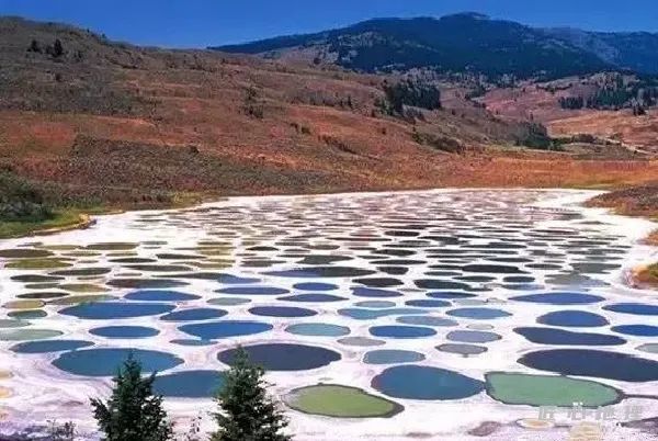 斑点位于美国华盛顿州和加拿大不列颠哥伦比亚省,随着烈日的暴晒、湖水蒸发,便结晶出了各种矿物质,因此便形成了非常多的浅池和白色相变界限,远远看上去就像在湖泊之中布满斑点,因此得名“斑点湖”,由于水中富含有矿物质,便会呈现出绿、蓝等罕见的颜色。使得斑点湖看上去美轮美奂、从满了神秘的色彩。同时在斑点湖也是世界上镁硫酸盐、钙和钠硫酸盐等物质含量最高的。谭老师地理工作室综合整理