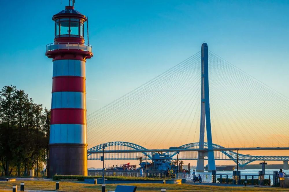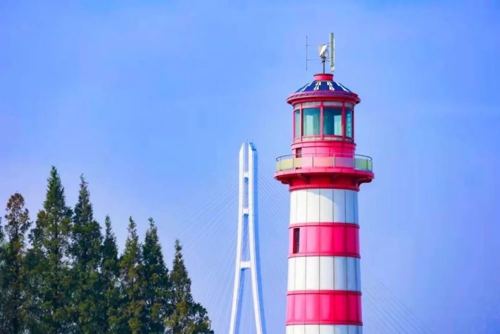鱼嘴湿地公园的灯塔红白相间,十分夺目。毫不夸张说,随手一拍就是一张大片。