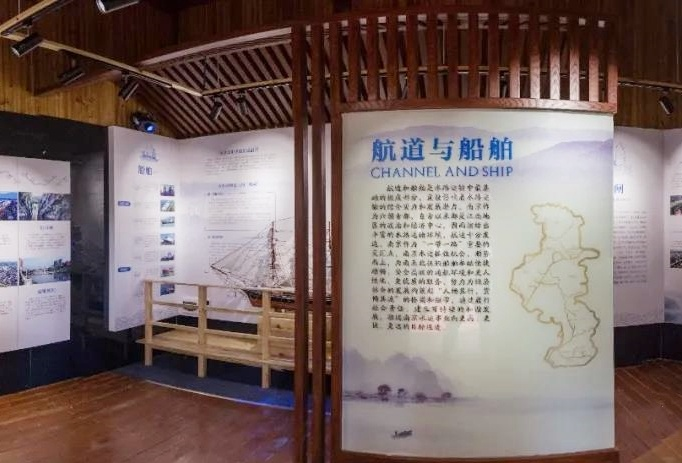 长廊上方的横梁则布置有南京水运大事记,目的是通过这些大事记来展现南京水运历史的源远流长。在大事记的背面则是南京水运文化故事,介绍了南京水运的一些小故事以及南京著名水系以及水域地名的由来,趣味十足。