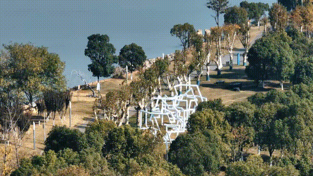 作品通过对江畔垂柳的三维扫描、打印与集结,重构了江岸晓风中的依依杨柳,别有一番趣味。
