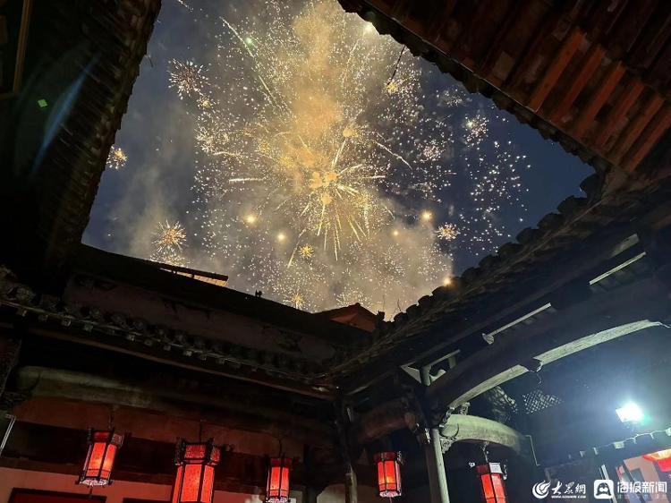 从祠堂天井处观看到的灯会烟花,受访者汪文媛供图