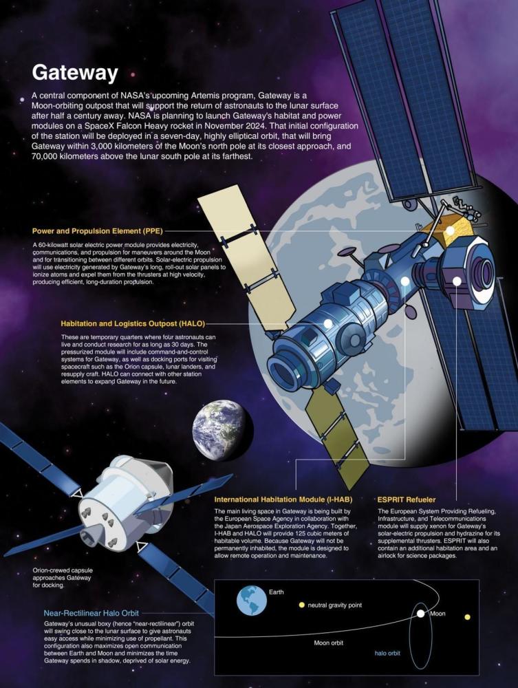 由于SLS火箭运力差了不少,只能发射飞船,美国计划在月球轨道上建造一个名为“月球门户”的空间站。