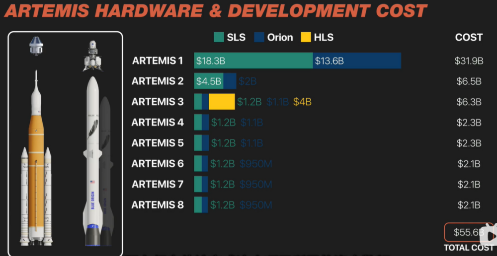 第二和第三发SLS火箭,成本是65亿美元,之后的SLS火箭成本将降低为23亿美元,如果项目没有再一次超支的话。