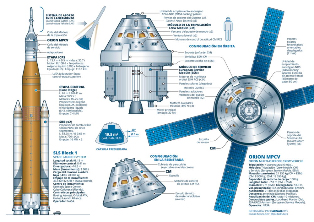 新一代登月飞船猎户座飞船,和阿波罗飞船的重量差不多(26吨和28吨),所以土星5号可以一次发射飞船和登月舱,SLS就只能发射飞船。