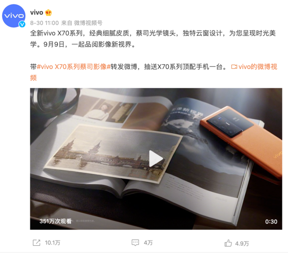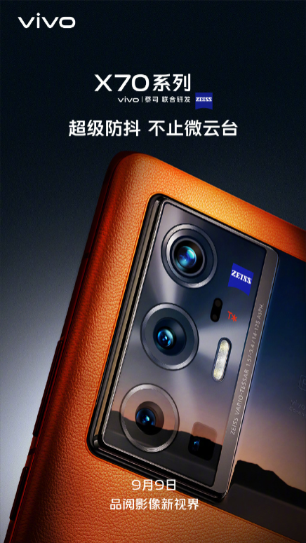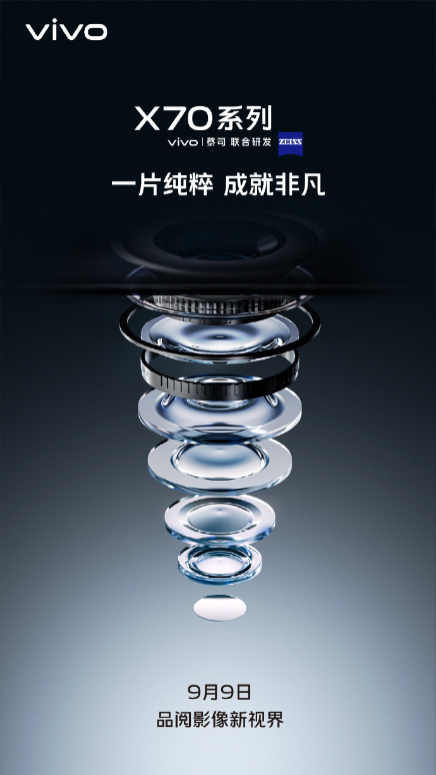 根据目前@vivo官微在微博上预热的信息来看,此次即将推出的vivo X70系列的影像方面将还是与蔡司联手打造的,体验上会更加优异且出色。从下面的海报上,我们可以了解到,这个系列的新机将采用蔡司原厂玻璃镜头,这也就意味着,它的进光量会更大,呈现出来的效果也会更加清晰,能最大限度的还原场景里面的细节。
