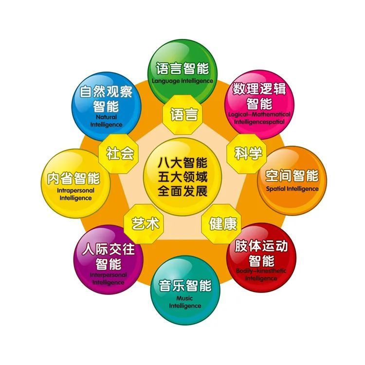 多元智能理论:美国哈佛大学心理学教授霍华德?加德纳研究并提出:每个人都具有八种智能。(即语文智能、数学—逻辑智能、音乐智能、空间智能、肢体—动觉智能、内省智能、人际智能、自然观察智能)只是每个人在八大智能上的强弱会有所不同,而八大智能的每种能力的组合也不一样,同时经研究进一步发现了大脑结构中执掌各项智能的区域。
