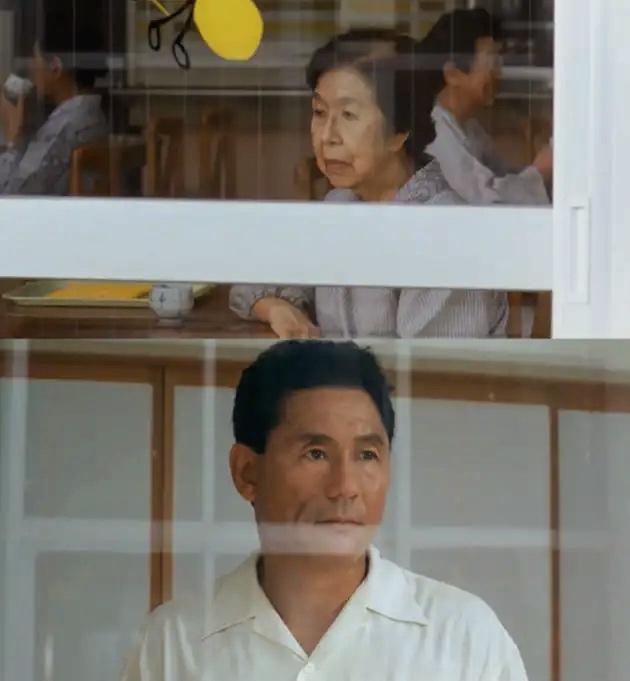对亲情天真追寻的正男,给了菊次郎面对现实的勇气。他去养老院探望那个曾经抛弃自己的妈妈,像正男一样,远远地凝视他的母亲。隔着玻璃窗那长长的一眼,许多情绪潮起又摁下,年老的母亲早失去了年轻时的锐气,脸上透出孤苦无依的愁容。这一刻,他内心的缺失感和被需要感完成了置换,他终于走出了被抛弃的阴影,和那个“陌生的母亲”完成了和解。