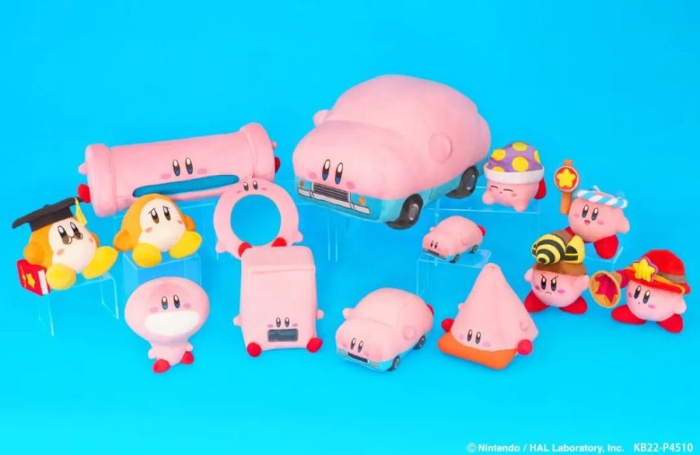 三英贸易推出的《星之卡比:探索发现》主题毛绒玩偶现已在任天堂 东京/大阪 线下官方实体店发售,还原了卡比在新作里的全新复制、变形能力,你可以看到星之car比、灯比、方比等等。