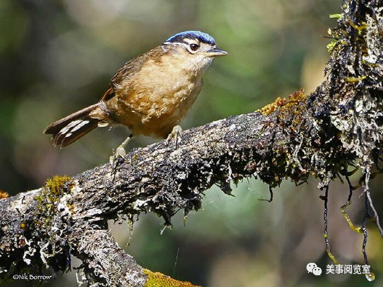 蓝顶鹛鸫,后两个字读音为méi dōng,是一种小型食虫鸟,可长到16.5厘米。它有一个蓝色和黑色的冠,有黄褐色的羽毛。