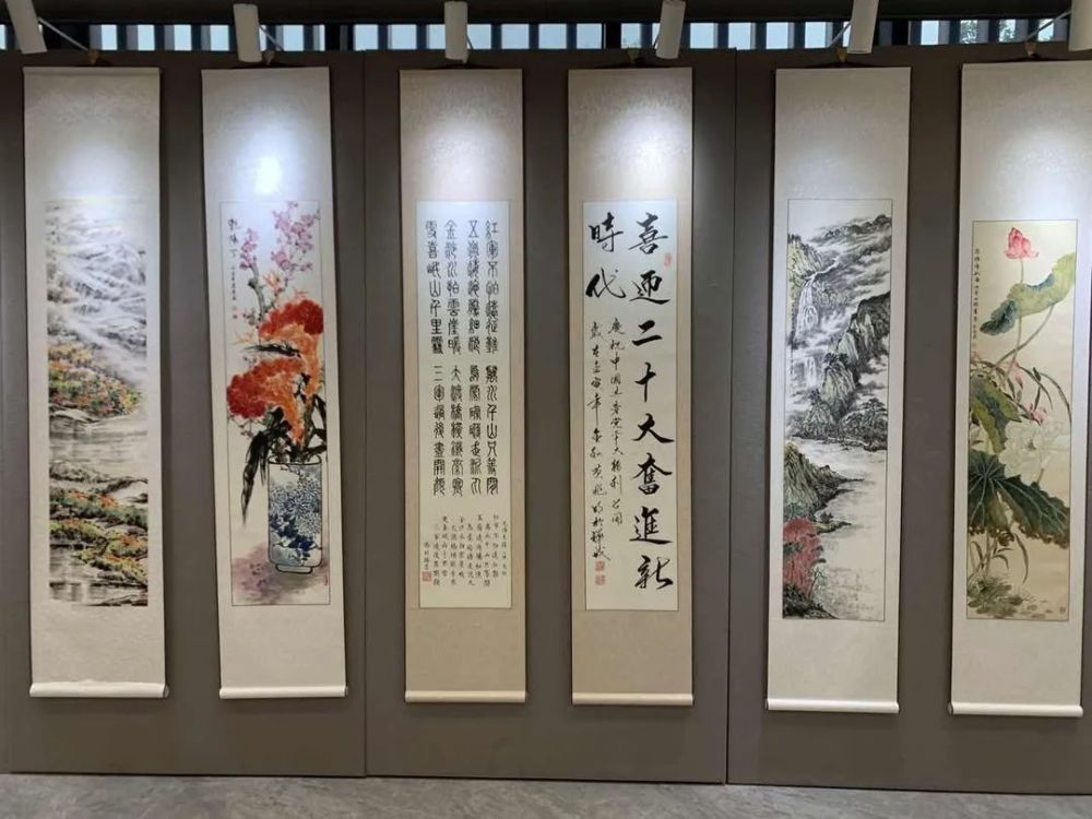 书画展邀请了石湾书画协会四十多名会员参与创作,他们从不同角度精心创作,讴歌时代风华,描绘美好远景。这些作品主题鲜明、内容丰富,形式多样,包括以花鸟鱼虫、山水风景等绘画题材以及草书、楷书、行书等书法手法,热情赞颂了党在带领全国各族人民实现站起来、富起来、强起来的伟大斗争中所建立的丰功伟绩。