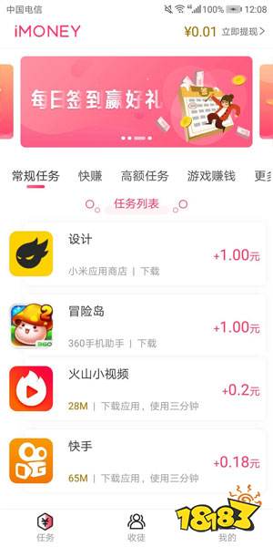 这是一款非常不错的赚钱APP,上线差不多有近两年的时间,它是苹果试玩元老级别平台爱盈利旗下安卓版的试玩软件平台,大家可以放心玩,如果想在安卓手机上找一个真正的试玩赚钱平台,那么iMoney安卓版是必不可少的!
