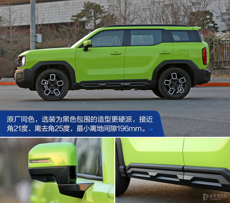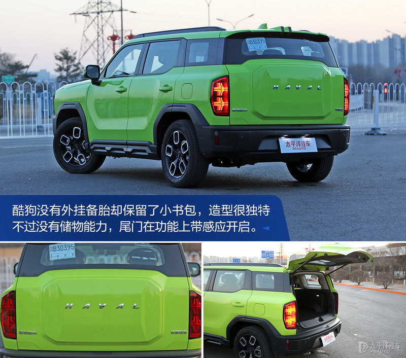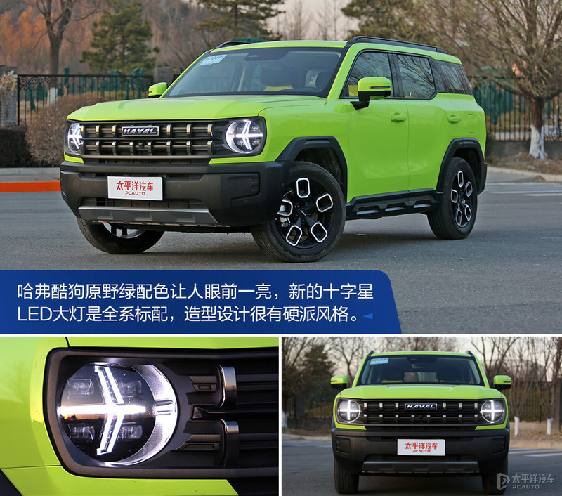哈弗酷狗(询底价|查参配)相比哈弗大狗是一款更能体现个性化需求的产品,独特的设计搭配原野绿车漆配色,说实话心动还是有的。据说多款车漆配色也是通过用户共创计划征集而来,可见其用心之处。在设计方面整车包围可以选装原色全黑的包围套件,让本就硬派的造型更爷们了。酷狗应用了新的十字星大灯组设计,并且全系标配为LED。车尾更有特点,虽然没有外挂备胎,却依旧有一个凸起的小书包存在,查看之后发现只是一个装饰,并没有额外的空间扩充,所以这个位置的设计思路应该是很单纯的想要别具一格的理念,不知道大家是否喜欢呢!